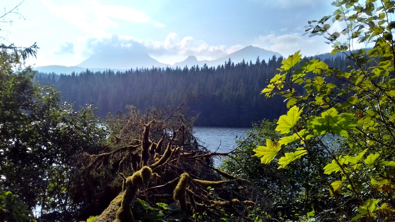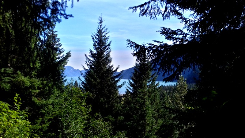 After a small forest where singing is my only chance against bears, the view breaks into my eye throughout some slow mountains. Shy lakes are revealed in the far, grey-blue in mounts’ heart. You can hear the river running downhill, invisible, and fire weeds paint in pink blueberry trail. Sun shines, but not really, fragile behind his silver curtain. Evergreens sparsely intertwined, vanishing little by little in mountains plateau thousands of colors. All of sudden, green heights rise everywhere and slowly lead us to Lost Lake mesmerizing blue. The water is so blue, so pure, so mysterious; how my words can give justice to this blue? How any artist can challenge a wild masterpiece?