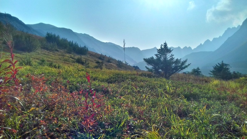 Days are flying and get less smoky even if the bay still hides behind a blurry curtain. Not enough to prevent my impatient feet to get some last hikes though. Alice was calling me from the other side, yet I climb Mount Marathon, harder but shorter. It is steep right away, no for play, I slowly get progress, step after step, matching my breathless heart and my enchanted soul, surrounded by devil’s club berries that I adore. The path offers a flat truce for a little while, the top doesn’t seem so far with no tree to tell me about distances. The view is beautiful even with a grey filter on my eyes. I can tell the mountain’s sides have dried since my first hike, it still shines happy and colorful summer though. At some point, I don’t hike anymore, I truly climb so steep the rocks feel along the river full of Mount Marathon hidden ice. When I get closer to the summit, glens are so beautiful, drawn by their own mood in a soft sun, in rough rocks. My walking companions are quicker, leaving me to my bitter thoughts, to my unfair and paradoxical ideas… To think that I am here, my body suffering uphill, fleeing to the other end of the world because, one day, my being was transformed, because my soul is not able to find her home anymore…