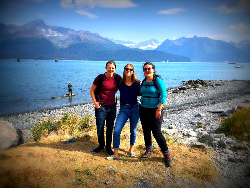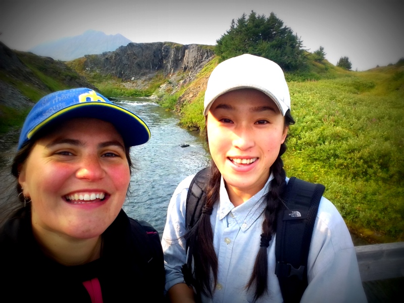 Then, there were Devin & Jackie, Jackie & Devin, they always go together. They were like a mirror of my own path, arrived and left almost in the same time, weaving a peculiar and invisible string between us. Devin is my friend from Pennsylvania mistaken for a French because of her stripes shirt – everyone knows, or at least the US, this is THE French touch. Jackie is my friend from Kentucky, all her teeth in her smile broken by such a high-pitched laugh. With Devin, I compared our two nations’s cultures, habits and paradoxes in the Yukon Bar soft light. With Jackie, I survived to sea demons that challenge our stomachs, united forever by the vomit I didn’t throw and the one she fed to the fish. With both of them, I almost touched the sky, fliting from one tree to another, challenging and even taming my vertigo sometimes. With both of them, I wandered in Seward streets, along Resurrection Bay blue water, in a smoke day that grayed out our eyes but not our hearts. Because of them both, I spend the most boring minutes listening over and over about 1964 tsunami. And when they left, a bit earlier than my own goodbye, they made a void in my heart that hates farewell. They slowly invaded my friendship without my permission, with the untold smiles they gave to my sad thoughts, and when I got a chance to hug them in Anchorage night, I didn’t hesitate. I took those three and a half sleepy minutes for another see you soon.