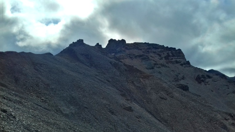I wake up with sore arms and to match them, I get to tire a bit my legs. I start my first “real” hike here in a less crazy wind, glad that I got a new woolen headband to keep my ear warm. I go up right away to the unknown summit. Cars’ noise yet so close is almost invisible so loud the wind is. I can sometimes hear the torrent’s sound though. The already fading and shy green completely disappear into the bumpy trail, shinning like silver in the sun. Mica, this lying gold, gets copper or silver shades depending on the red or the grey stone it is sparkling on, and I wonder if it is some silver powder. After all, some found tiny gold nuggets in mountain stones. This golden trail is bright and autumnal above the giant untouched wilderness around me. My legs hurt, I can’t breathe, it never stops going up on this round ridge falling into a dry cliff on one side, running almost tenderly in the other side; both hiding some ground squirrels’ fleeting songs all the way up. I finally reach the first tiny top, one of this multitude, sharp like a teeth to reveal some new passages drawn by the clouds. Every time a new landscape shows up, it is a new magic wand in my eyes, a wonderful race in my heart. I feel like a drug-addict irresistibly waiting for her next shot.