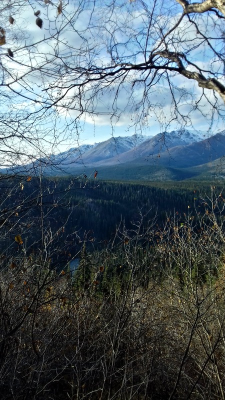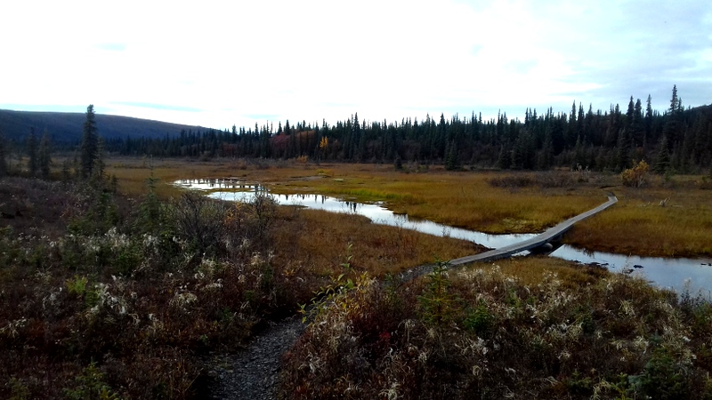 The next day, eager to walk but always late on my writings, I finally explore new places. I warm up nearby translucent Horseshoe Lake so quiet compared to stormy Nenana River, and eventually walk a slower and newer path, the three invisible (for me) lakes hike, shortened by the sun’s path. I actually get stunned again for those two walks, I can feel the first nations’ souls. Like I felt on the Olympic Peninsula rain forest’s shores*. The view is beautiful, the landscape pleasant, I linger on the bridge hanging in between two words.