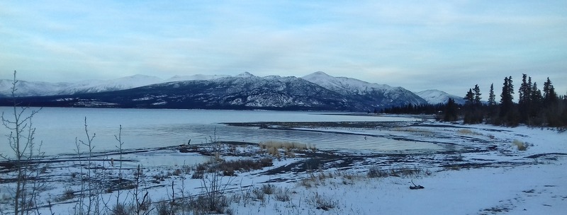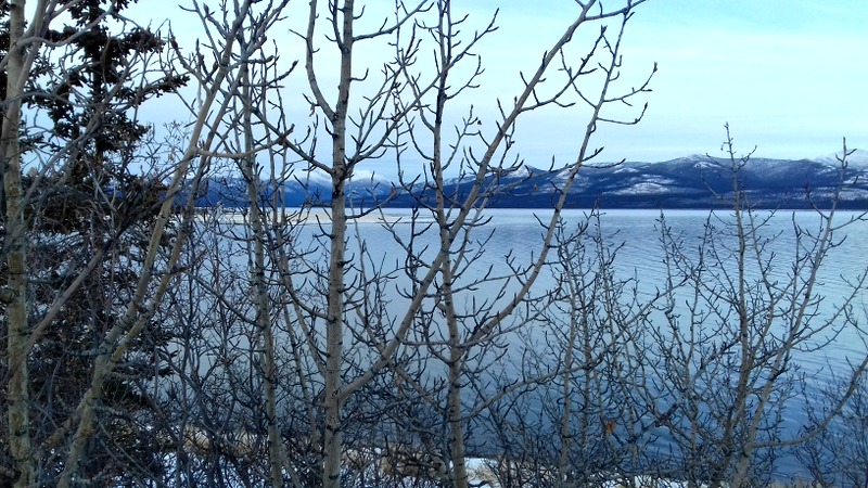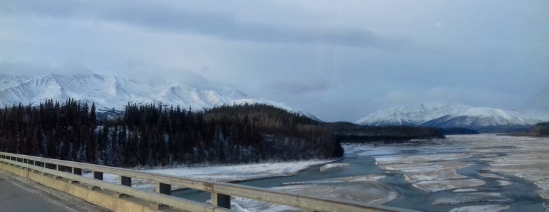 I then have a glimpse on small surprising cotonwoods fields along the road, in the same time I have read about them in my Alaskan novel. They lead me to the final partially frozen lake, sublimation of all those I fleetingly gaze at on my journey. This one stops me and coldly cradle me with its breaking noise in between still and moving water. And I follow White River’s current not whiter than any other. All absolutely mesmerizing. Unreal.