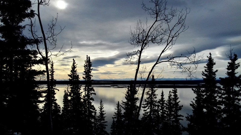 My space and thoughts wandering end in the blue almost lagoon of Destruction Bay – destruction, what a strange name for such an unreal almost magic blue – when night turns to twilight….