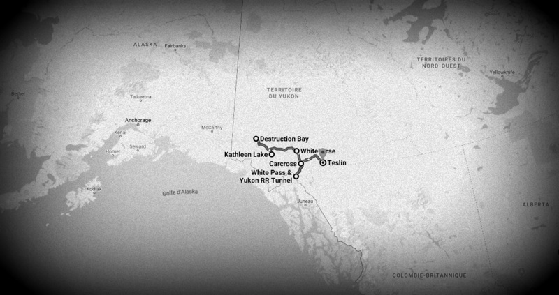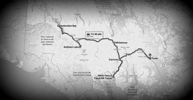 I finally go back on the road, with a new Irish buddy, trying to travel through seasons, the weather changing from minus to 0 and even plus plus on my wandering thermostat. We take a detour to Carcross which strangely look like a western movie, meeting on our way the Yukon Emerald, and almost get to the other Alaska. Landscapes are so different all of a sudden. Round under their black trees, underlined by some snow, giving a way to incredible and unreal White Pass. We follow rivers and lakes’s currents, so peculiar blue, often called white though like everything in Yukon. White River. White Horse. White Pass.