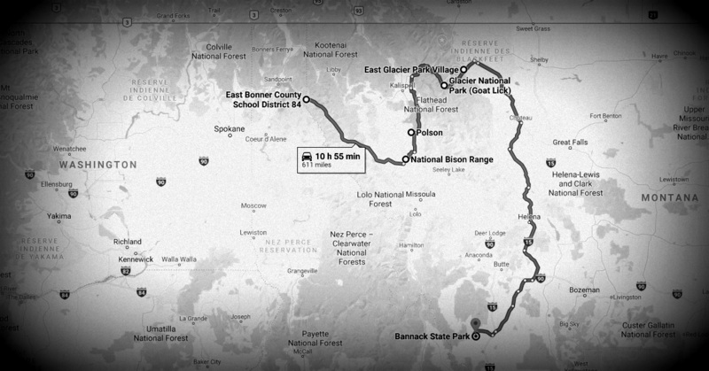 A few miles after Montana sign, a traveling thought walks into my mind. I get a glimpse at a couple, smoking their morning cigarette on the sidewalk, going I don’t know where, maybe like an early bird ritual. I am stricken by this fleeting moment when our paths cross without a look. I am only passing by, wanderer in the big world, when the world might fit in this daily walk, in this passing town from where their roots have never traveled.