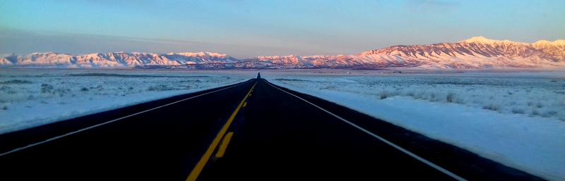 I hit the reckless A2 – Clark County Road. Bold adventure, to not call it stupid! Step by step, the road is more and more snowed… Although I swore to myself I wouldn’t be reckless, I swore I would turn back if it started to be too dangerous. But fresh tires prints fool me and it becomes my rule: as long as cars have driven this road I am good. Then, even if fog is getting thicker, even if the night is knocking at my window, I can go on. I drive through actual ghost towns: ranches stand along the road, but it must be summer pastures because everything is absolutely desert. I thus feel awkward several times. Thankfully, fog clears up and I become a philosopher. You can sometimes feel lost, you are in the fog, you don’t know where you are going, your loved ones worry and you might as well; but it clears up and shows you the way, even for a fleeting moment, and gives you hope to keep going even if you are uncertain. And then, despite this white blindness, this light gives you more than hope, it gives you faith no matter what. You know you are going the right way.