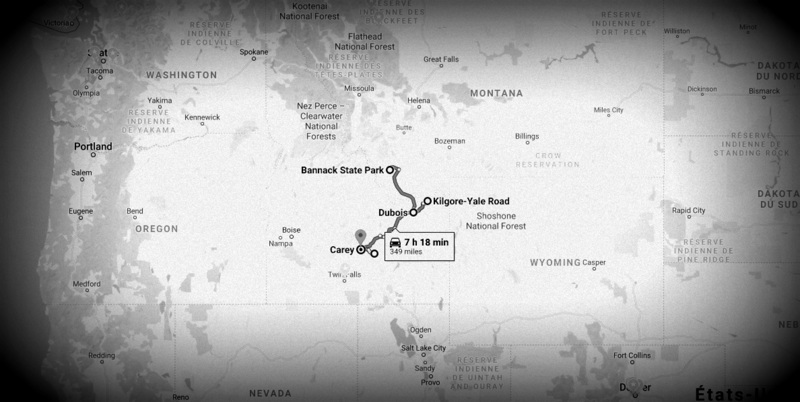 I followed Nez Perce’s trail yesterday, I drive the Oregon Trail today. The Gold Rush traveled through in its hoping wagons. I am in the Far West even if I am always going east; I can feel our black and white western movies’ Cow Boys’ and Indians’ souls chasing each other and following my wandering. Idaho is where the West was won in my imagination. Like always when I am traveling America, I am pierced by other History than mine. I am mesmerized.