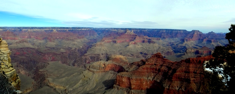 I make a windy and sunny stop at the Grand Canyon Village library, surprised actual people are living here. My day still ends on the cliff and in the cold as the canyon takes sunset colors. Topped with my inadequate but necessary chapka, the freezing wind blushes my cheeks and my heart. I am fully here, I amazingly gaze at the giant wilderness. At this puzzling scenery. Because, if I get how rocks got to cut deep down – sometimes even to the bottom of the earth -, I don’t really understand why it took this shape on the way down. Thankfully, Mister Geological Museum explains it to me: the rain has finished the river’s job, it has refined Colorado’s draft.