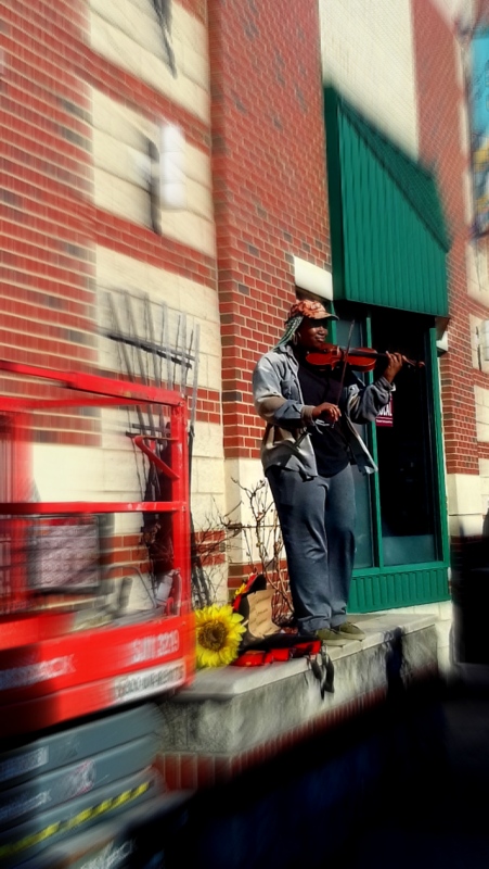 And we detour towards the Magic Garden, eclectic and shiny, which strangely reminds me of Gaudi architecture. And we wander throughout South Street, so different from my bus arrival quiet lights. Condom Kingdom is neighbor of the best donuts in town, the street remembers discriminations against Blacks and plays violin with green dreadlocks, walls draw the racist ancient mayor’s portrait, born and raised in the district people want to remove his lying features.
