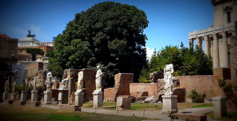 The drapery starts to move, I forget about the heat, the thirst and the sweat. The drapery starts to move and the marble flesh starts to move with it. I get a glimpse of Vestals’ delicate princess walk. Because statues in marble always have delicate feet, haven’t you noticed? And perfect proportions as well, of course. But their curves are more or less generous depending on times, I could almost see my own body under one of them’s dress. Only one though. Others look like olive branches, like orange flowers. It doesn’t matter, marble is telling me a story, it moves me despite those mutilated statues’ waist.