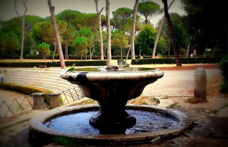 I gazed at “all” the Roman white fountains, prepared to all the emotions they will bring within my heart, thanks to big tritons, bulging muscles and close mythology. Yet, they left me unchanged. And it was the most surprising and unexpected among them which moved me. No white marble nor statues from which turquoise waters spring. The simple and ordinary poesy of life, brought up by a small green parrot with an orange bec’s free flight.