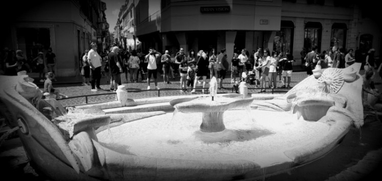 The two love birds had therefore walked the Scalinata di Trinità dei Monti and took shelter under Borghese Gardens’ shade like me. For their first freedom, they had declined the unimaginative lovers habit to set sail on Esculape Temple’s pond, and chose this authentic and humble fountain instead.