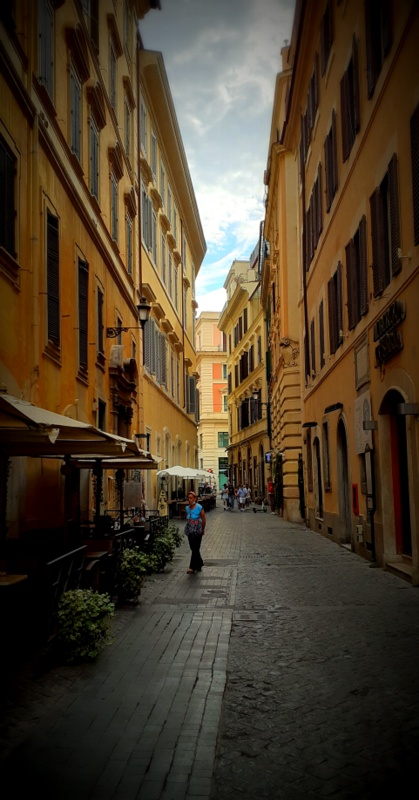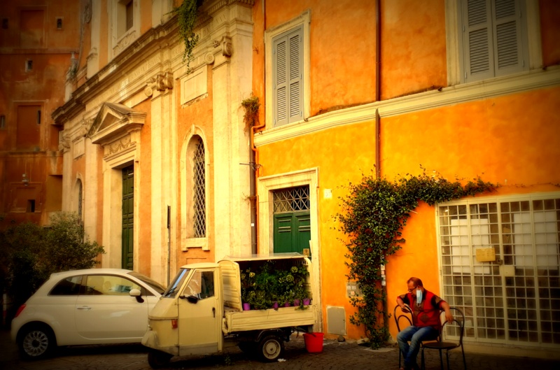All the better… I like more and more being wandered throughout narrow and shadowed meanders. Brushed by ocher and leafy walls. Flown above dark and smooth grounds. Hung by my cappuccino’s bubbles. I gaze at Rome’s life across centuries. I admire Romans being their eternal city’s indifferent masters.