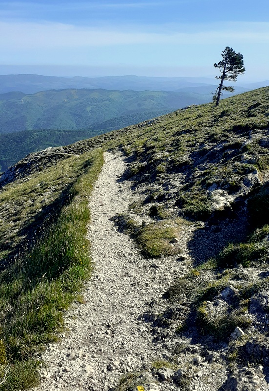 (km 2.93) After passing dying bushes, finally walk in the open to the summit you see. Take advantage of these last hundred meters of elevation to observe the vultures.