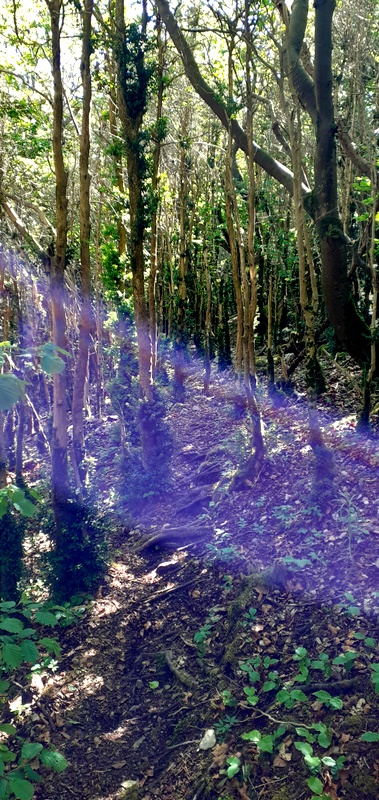 Then, from the colored meadow, it was quite pleasant to meander through mossy trees and wild flowers. I was probably expecting (it seems I still had some expectations after all…) a rocky and dry land from the beginning to the end… As the private and rocambolesque intertwined trees softly wrapped me, instead of aliens, I was readier to face Irish fairies. Maybe did they whisper, invisible, to my heart to help my revelations and liberations.