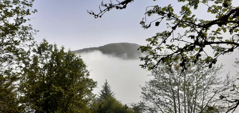 Thus, when we arrived at the Col de la Core – our hike’s trailhead – the grey sky made room for an ivory whiteness. A fog, similar (to my own surprise) to a Maroccan hammam’s hot steam more than hard rains’ Irish haze, was blinding the scenery. As we had gone up, we actually got closer to the sun and its heat filtered by the mossy air’s opaque particules. We then were a higher cloud’s fluffy prisoners.