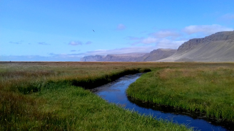 I land in a blazing sunny Brjanslaekur and choose to walk to my next rendezvous along Hellalaug hot spring shores, amazed by the blue and clear water in the quiet waves. I am not yet stunned by the Fjords though, I gaze at all the Ben Bulben’s Icelandic brothers, I look into the green they are made of, understanding why Icelanders, tired of their volcanic dark land, prefer this change of scenery. I enjoy my solitude, impatient of an emotion that would rock my world in front of what my foot would face.